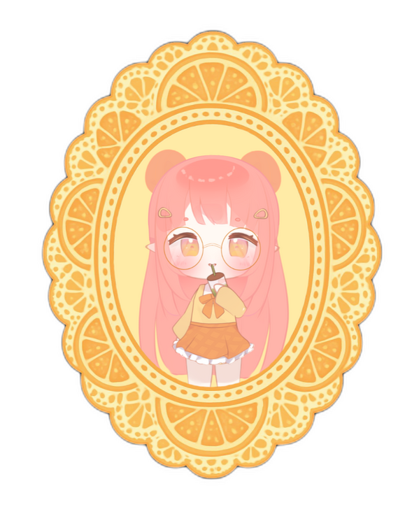 Deep in a hidden fae forest lies Peach Pit, a cozy town of endless spring.At its heart grows an ancient magical tree that bears both peaches and clementines. One rare night under a Pink Moon, a special hybrid fruit began to glow. When it gently fell, a single seed landed beside a sleepy bumblebee.Bathed in moonlight, the seed bloomed into Peachy Clementine~ the very first of her kind.The tree crowned her with glowing clementine blossoms, and the Pink Moon kissed her hair blossom-pink and gave her sparkling wings.Now Peachy is the gentle keeper of Peach Pit. She spreads warmth, kindness, and sweetness wherever she goes. When she’s happy, her wings flutter and scatter sparkles. Her songs make flowers bloom faster, and she loves snacking on wild blueberries she calls “fallen stars.”Through a moonlit mirror pool, she discovered the human world.